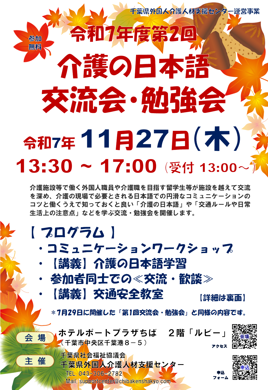 介護施設等で働く外国人職員や介護職を目指す留学生等が施設を越えて交流を深め、介護の現場で必要とされる日本語での円滑なコミュニケーションのコツと働くうえで知っておくと良い「介護の日本語」や「交通ルールや日常生活上の注意点」などを学ぶ交流・勉強会を開催します。